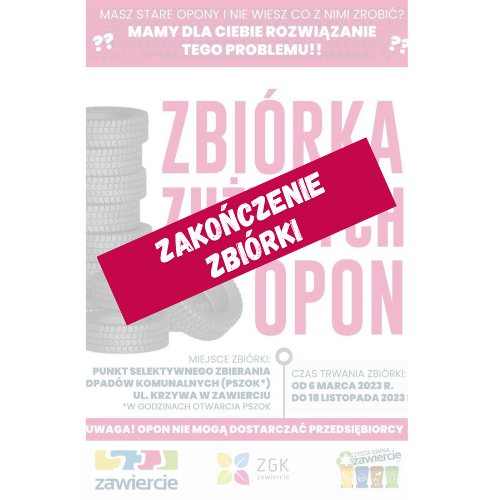 Informujemy, że akcja zbiórki zużytych opon organizowana przez Urząd Miejski w Zawierciu we współpracy z Zakładem Gospodarki Komunalnej Sp. z o. o.…