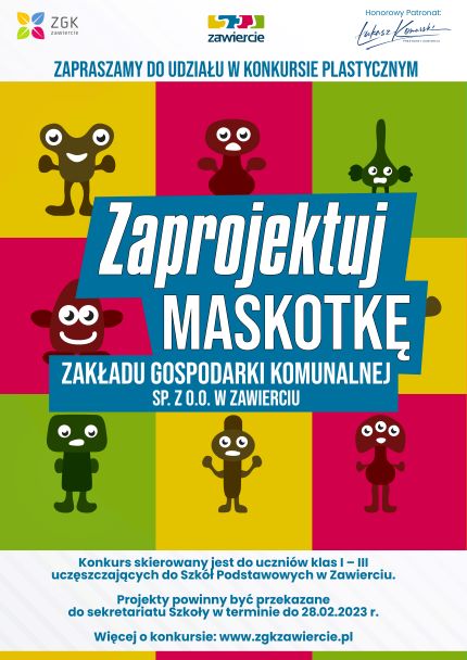 ZGK Sp. z o.o. zaprasza serdecznie uczniów klas I-III Szkół Podstawowych w Zawierciu, do wzięcia udziału w konkursie na projekt i nazwę…