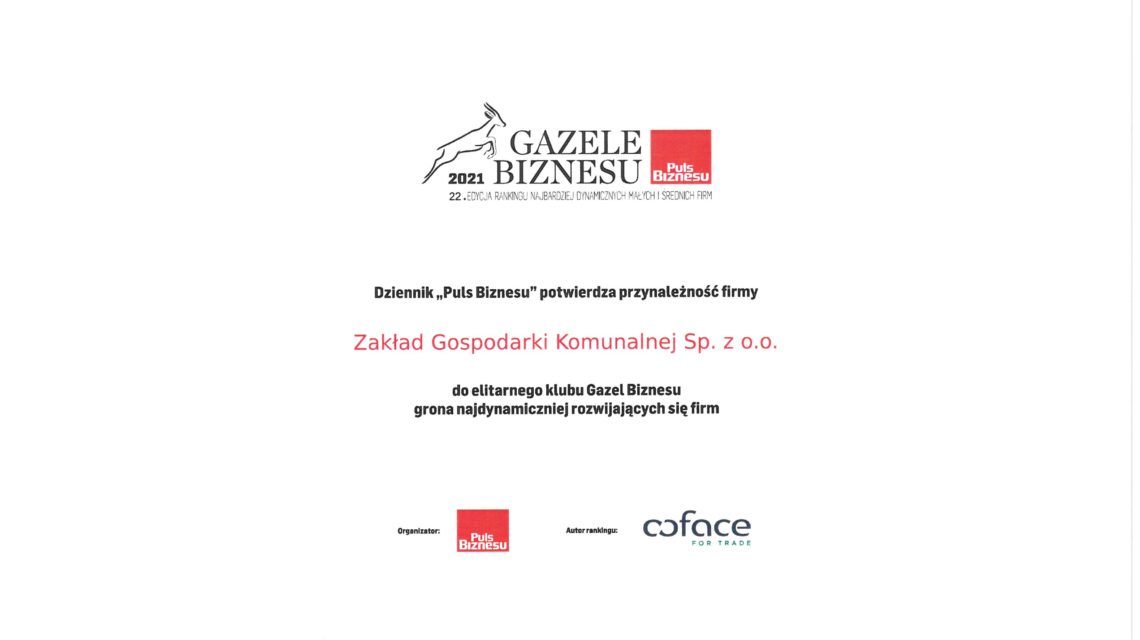 W ubiegłym tygodniu ogłoszono laureatów plebiscytu „Gazele Biznesu” organizowanego przez Puls Biznesu. Zakład Gospodarki Komunalnej Sp. z o.o. w Zawierciu sklasyfikowano na…