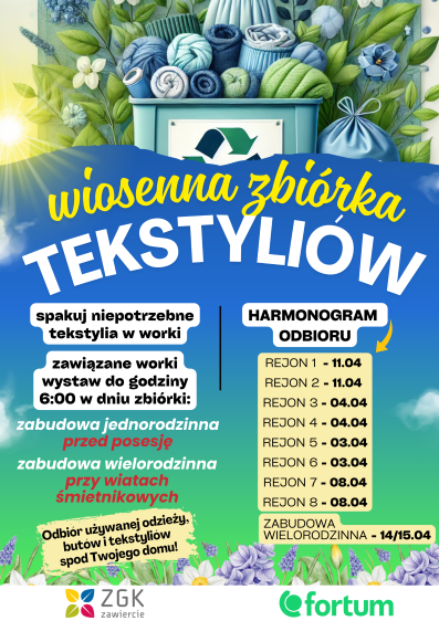 Wiosenna zbiórka tekstyliów w Zawierciu – dołącz do akcji ZGK Zawiercie Sp. z o.o. oraz Fortum Silesia S.A zapraszają wszystkich mieszkańców do…