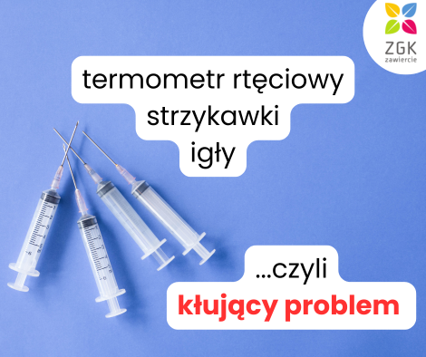 Termometry rtęciowe, strzykawki i igły należy dostarczyć na PSZOK Nie wyrzucaj ich do pojemników na odpady komunalne ani do pojemników na przeterminowane…