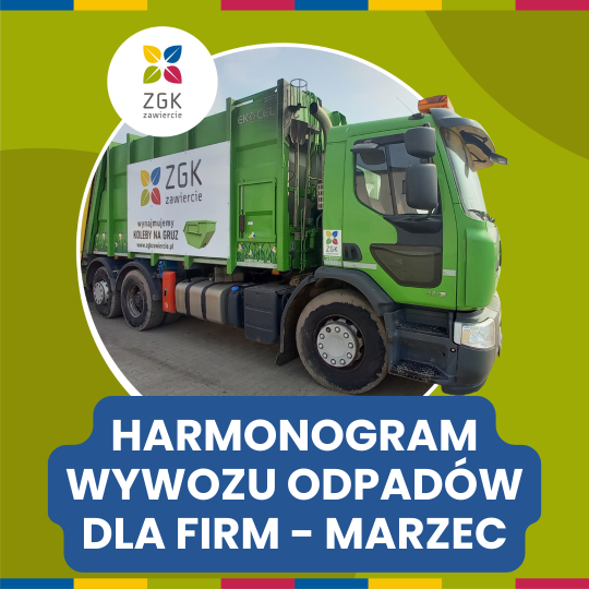 Harmonogram wywozu odpadów dla firm – MARZEC