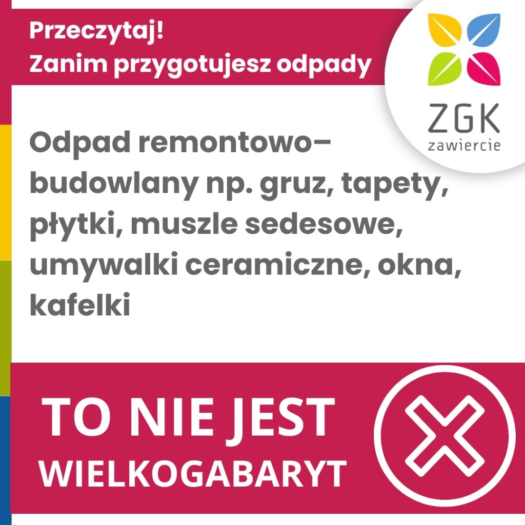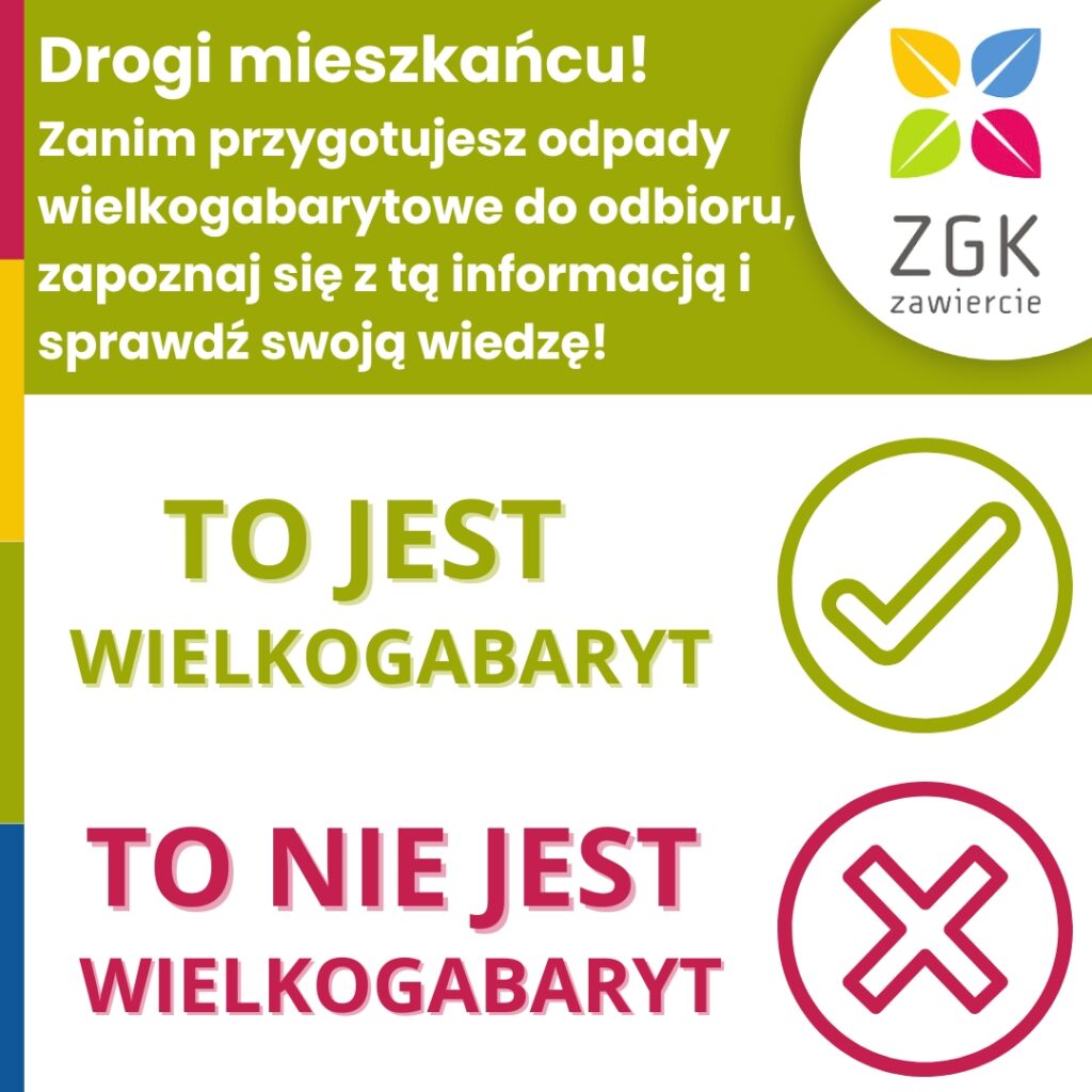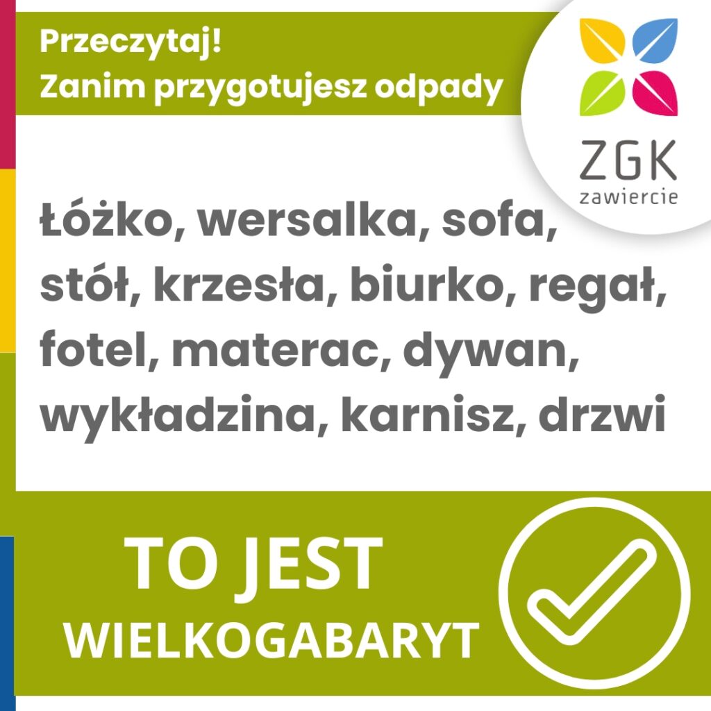 Przypominamy także, że odbiór odpadów wielkogabarytowych dotyczy tylko odpadów pochodzących z gospodarstwa domowego.