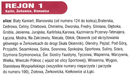 Rejon 1 – Karlin, Żerkowice, Blanowice