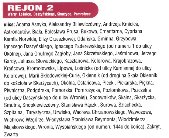 Rejon 2 – Warty, Łośnice, Daszyńskiego, Skarżyce, Pomrożyce