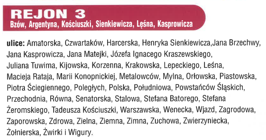 Rejon 3 – Bzów, Argentyna, Kościuszki, Sienkiewicza, Leśna, Kasprowicza