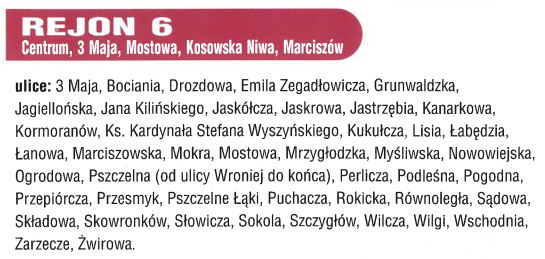 Rejon 6 – Centrum, 3 Maja, Mostowa, Kosowska Niwa, Marciszów