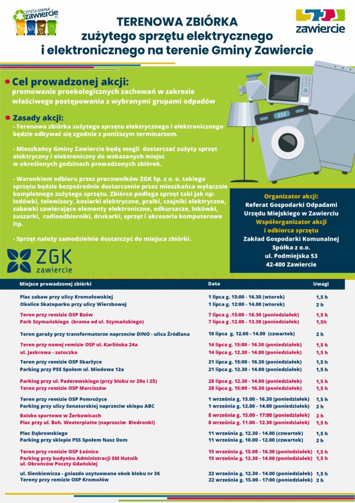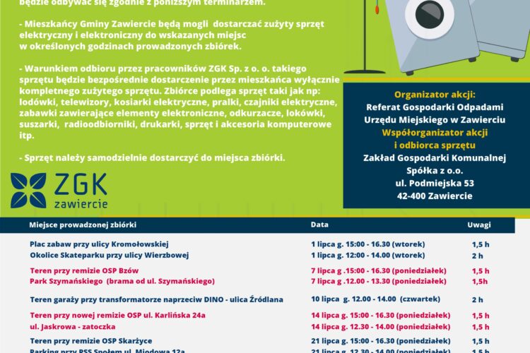 Terenowa zbiórka zużytego sprzętu elektrycznego i elektronicznego na terenie Gminy Zawiercie ‼️