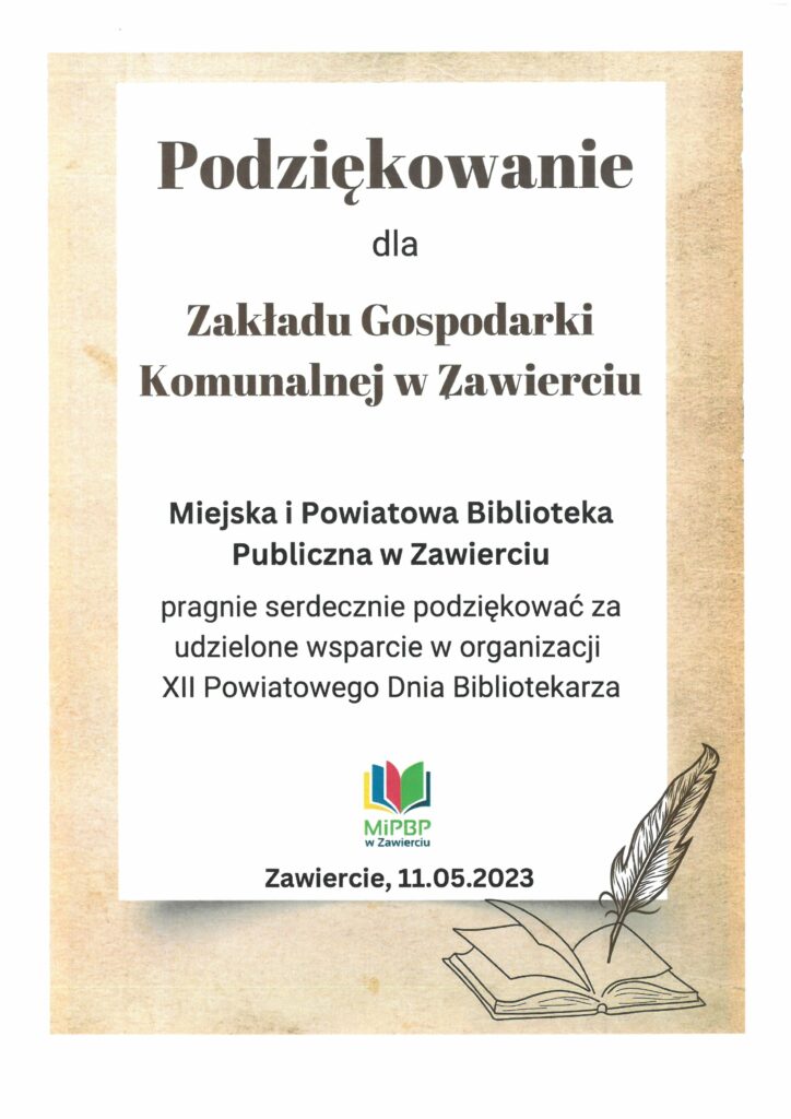 W Zawierciu już po raz dwunasty zorganizowano Powiatowy Dzień Bibliotekarza. Zakład Gospodarki Komunalnej w Zawierciu miał okazję dołożyć do tego święta niewielką cegiełkę.
