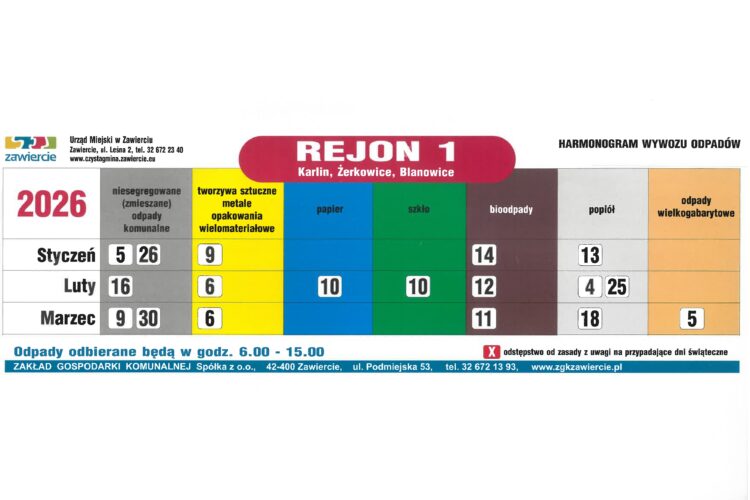 Harmonogram Zawiercie 2026 Rejon 1