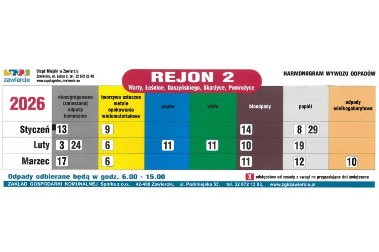 Harmonogram Zawiercie 2026 Rejon 2